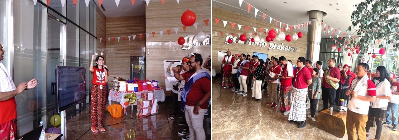 The Management Team and all of the employees of PT Gearindo Prakarsa working in the Head Office and in Workshop Setu participated in celebrating the 79th Indonesian Independence Day.  The celebration was conducted in the Main Lobby and the Front Yard of the Head Office of PT Gearindo Prakarsa, in GRHA Gearindo on Jl. Radin Inten II No. 46 Jakarta.